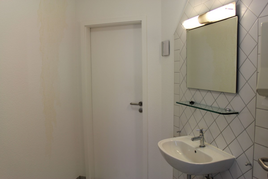 Die WC Anlage ist ebenfalls hell gefliest und entspricht modernem Standard. Alle Räume haben weiße Innentüren sind sind abschließbar. Netzwerkverkabelung für mehrere Arbeitsplätze ist ebenso vorhanden wie eine Gegensprechanlage zum Empfang für Besucher.