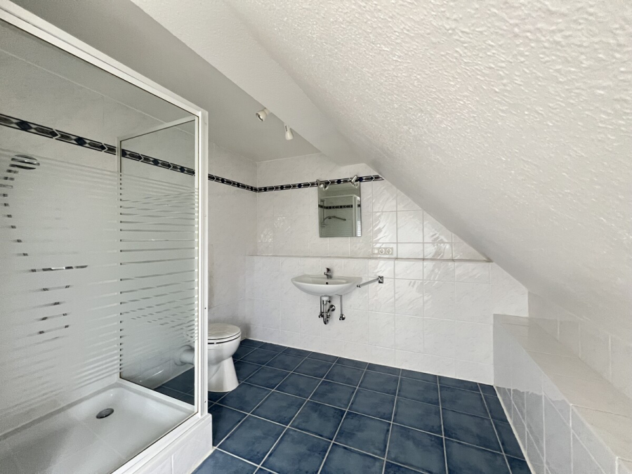 Das Dachgeschoss hält zwei weitere Zimmer und ein zusätzliches Bad bereit; zudem bietet der Zugang zum Dachboden weitere Stauraummöglichkeiten.